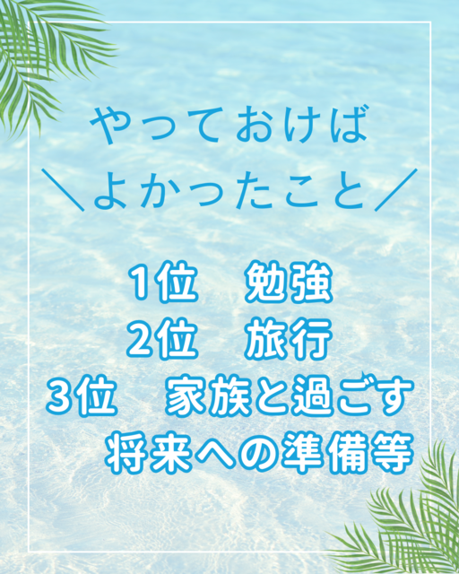 一方で、学生の夏休みに「やっておけばよかったこと」として多く挙げられていたのが、